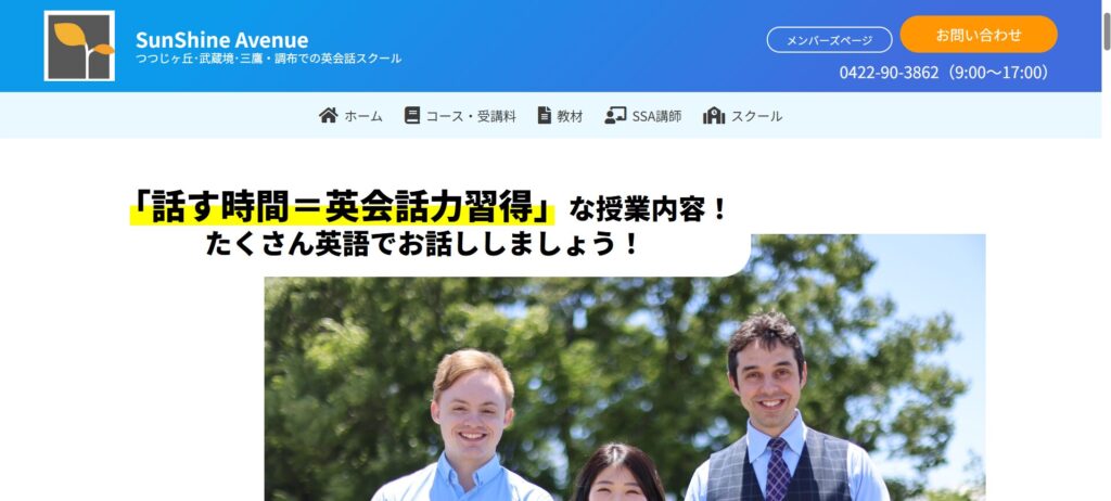 英会話スクールSunShine Avenueは、つつじヶ丘駅前、武蔵境駅前、三鷹駅前に展開する教室です。